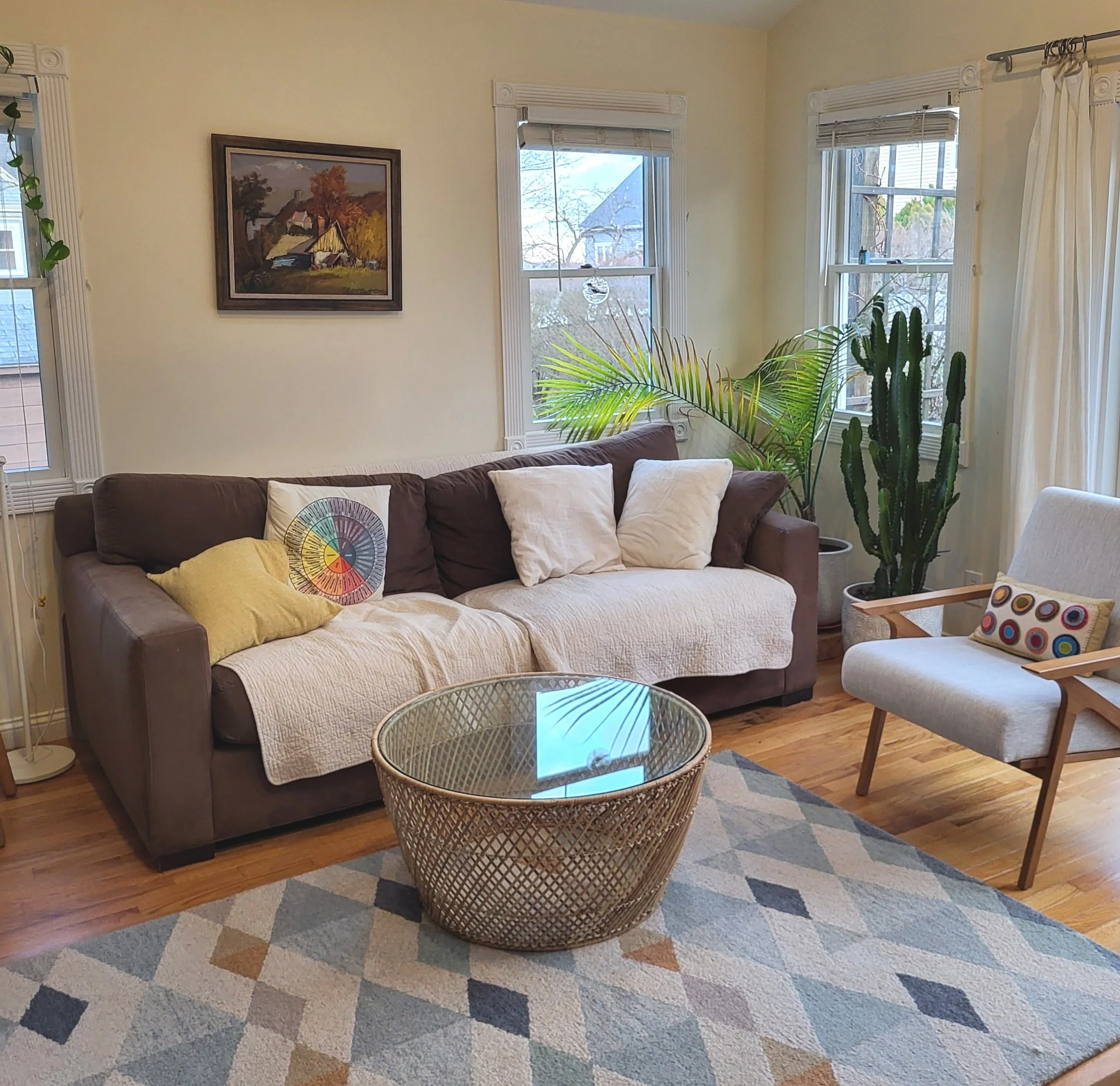If you’re struggiling with your living room layout, it costs you nothing to try repositioning your couch. Go to the hardware store, buy some furniture moving pads and go to town. Heck, even if your current layout is working, you can try something new “just because.” You’ll know it’s right for you when it feels calm. By calm I mean emotionally, yes, but also calm in the sense that it’s not in the way- you don’t have to squeeze past it to get anywhere- the flow of the room is comfortable and you can interact with loved ones easily for conversation and laughter.